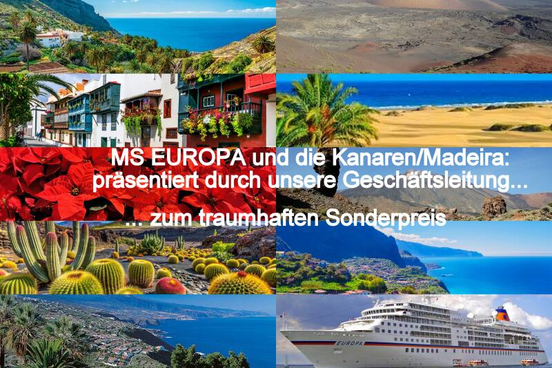 Diese Traumreise ist in erster LInie für Hapag Looyd-Neukunden gedacht; die noch nie auf der MS Europa waren. Unsere Geschäftsleitung wird Ihnen daher auch das deLuxe-Verwöhnschiff MS Europa vor Ort vorstellen.