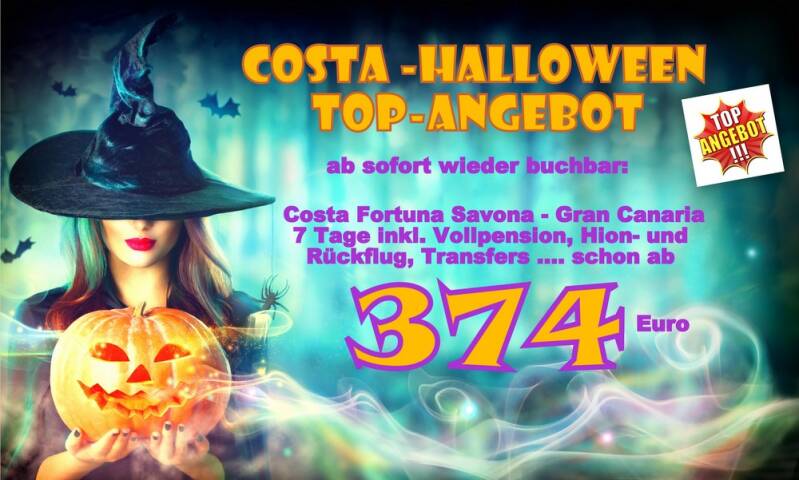 Unser sensationelles COSTA HALLOWEEN SPECIAL ist wieder buchbar - Costa hat Flugplätze hinzugekauft !